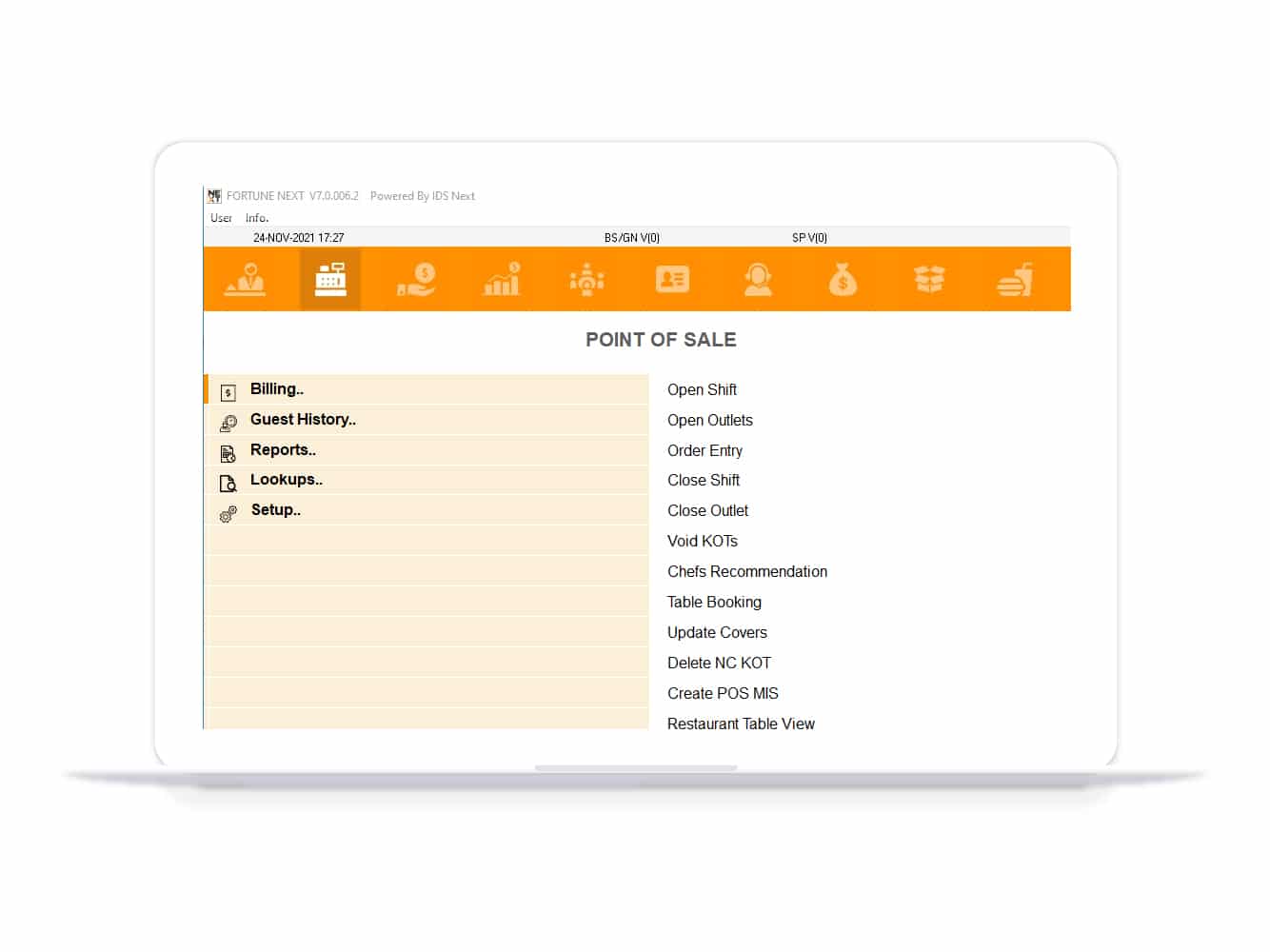 FortuneNext Point of Sale module allows better control over F&B services by consolidating all F&B functions while enhancing overall efficiency. From transferring kitchen order tickets to settling bills, this module enables hoteliers to manage a variety of services at their property by setting up unlimited Point of Sale outlets.
