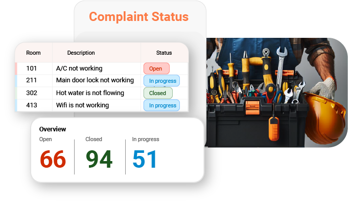 This module enables on-premise engineering and maintenance through a user-friendly interface incorporating indent management and acquisition management. It facilitates registering complaints for rooms or any other common areas and allows recording the actions taken to resolve the issue.