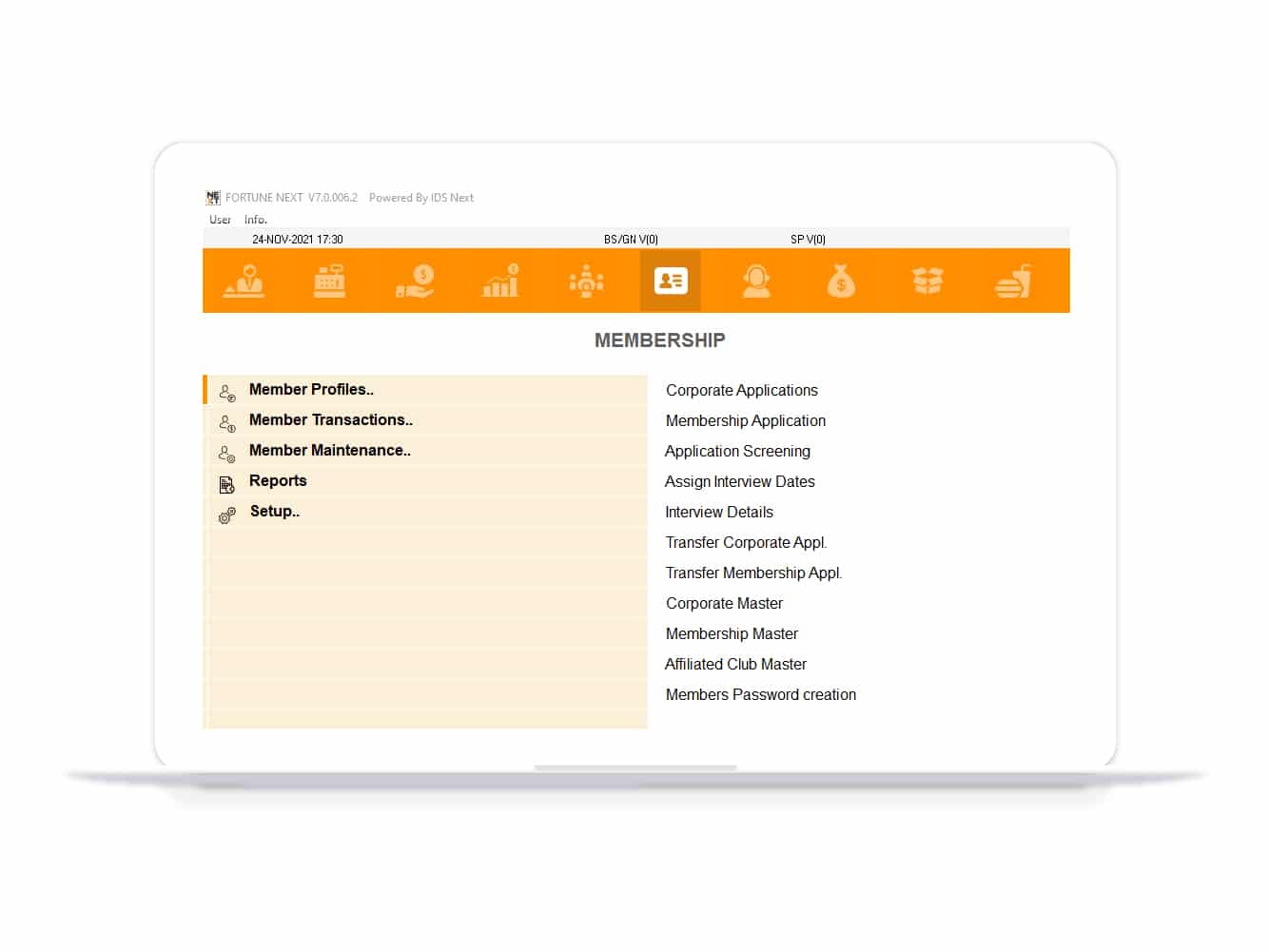 FortuneNext Membership module helps clubs and hotels with maintaining and providing services to members. This module deals with membership data maintenance in terms of creations, renewals, and terminations with the required financial charges in terms of their membership. Integration of the membership with our online module helps in settlement of bills raised in online modules.