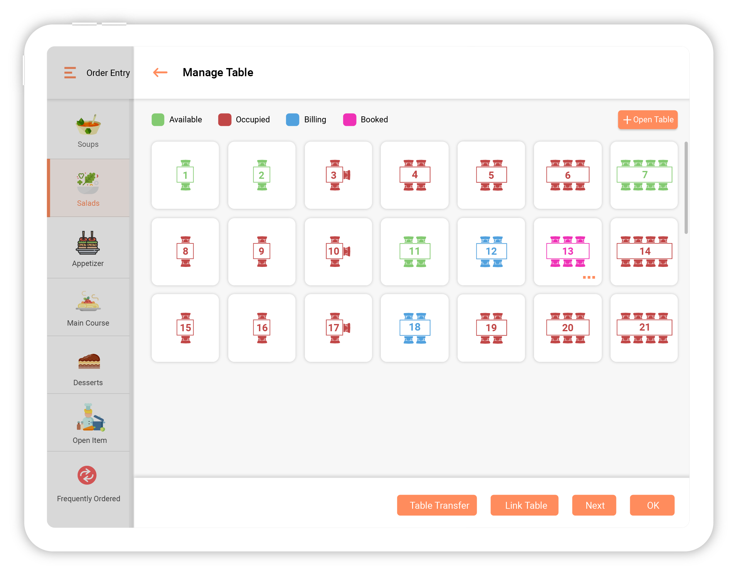 Automated kitchen processing and day-end reports.