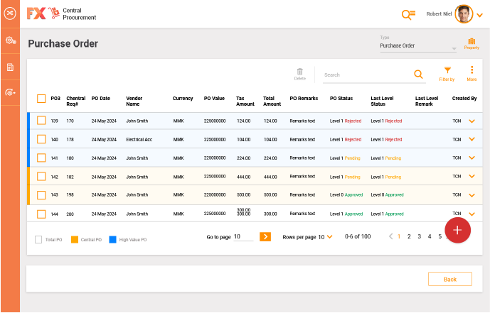 With FX Central Procurement, you can define approval levels and authorisation rules for various operations, ensuring secure and controlled access.