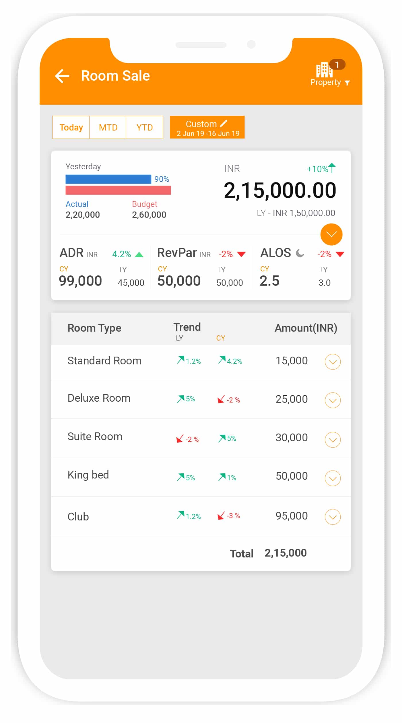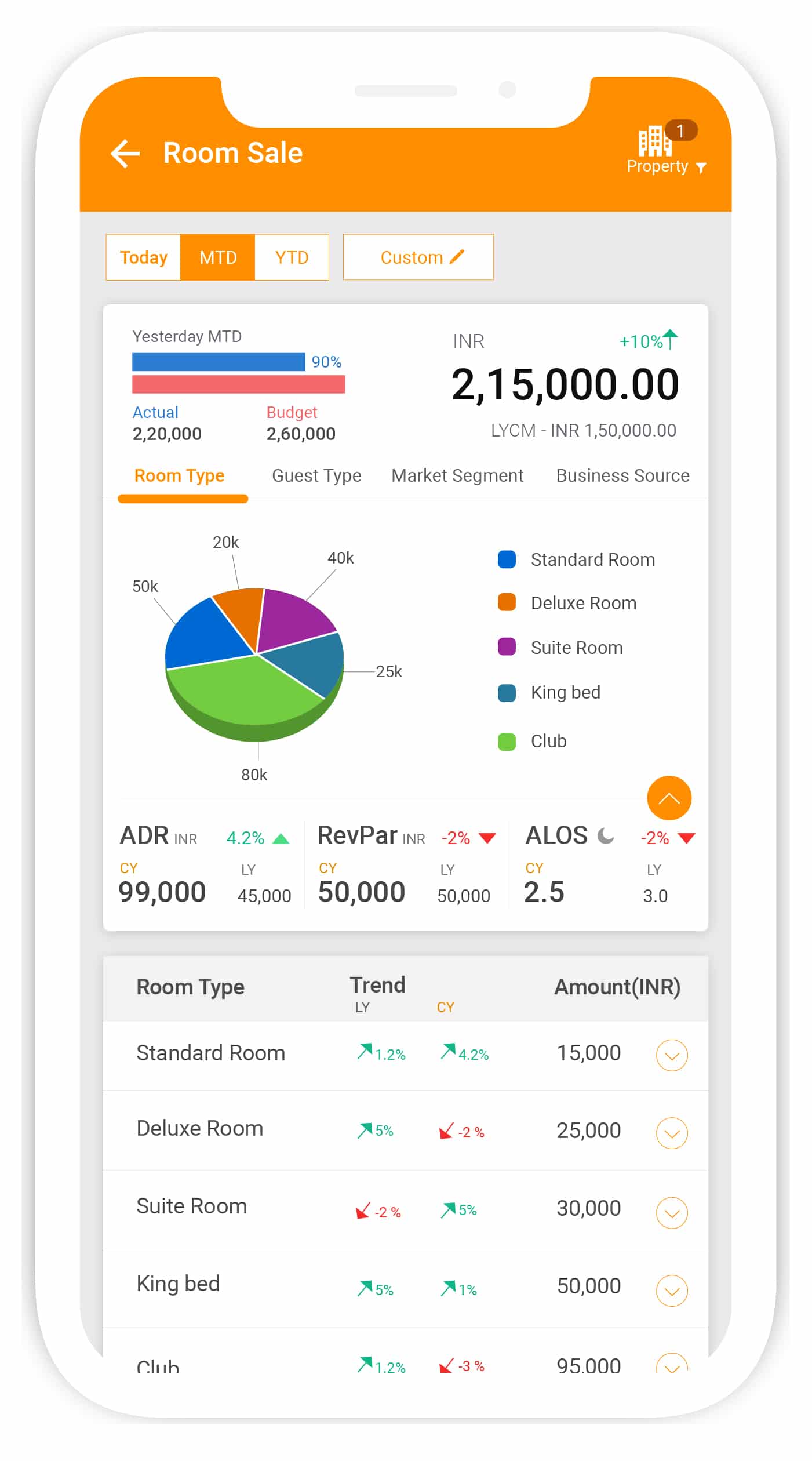 The day’s rooms–for-sale and stays in an easy-to-understand visualised summary. Ideal for quick overviews for faster decision making.